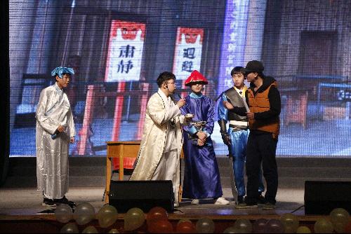 华灯初上,笙歌未歇。一支满怀激情的开场舞《let's get it》,引燃全场热情,彰显年轻人的蓬勃朝气与热血青春。随后由席新明、汪玉秀老师共同演唱的戏曲《屠夫状元》,其声婉转悠扬,使人充分领略到陕北风情和独具一格的戏曲魅力。除传统戏曲演出外,当代嘻哈音乐表演《b-box&rap》通过动感的节奏,迸发出一个又一个有力的音符,令大家耳目一新,把现场变成欢乐海洋。诗朗诵《光的赞歌》,以轻松的语调,歌颂明天的微光。歌曲串烧系列之《大学爱情》则以五首情歌唱响大学青涩而美好的爱情。《爱要怎么说出口》、《全部都是你》、《再也没有》、《我好想你》、《try》,每一首歌曲都饱含着对爱情的懵懂渴望,用一颗颗赤子之心,点亮属于机电的单纯小美好。